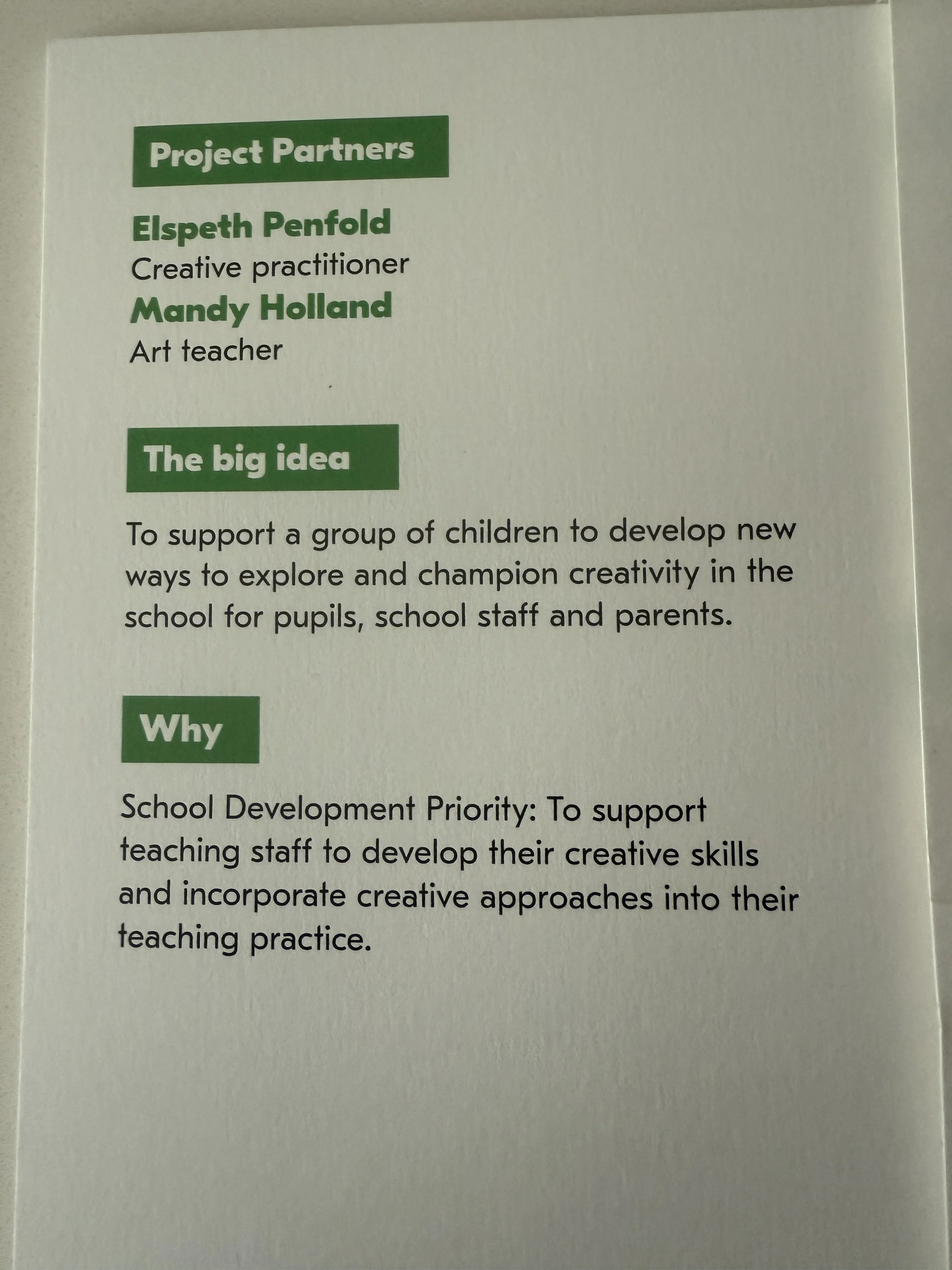 In October 2017 Elspeth was one of 10 artists commissioned by A.N.D. to work with a designated London Primary school on a project titled “My Creative School”. Elspeth worked with Teachers and the SLT on a co-designed project with the aim of supporting teaching staff to develop their creative skills and incorporate creative approaches into their teaching practice. The aim of this project was also to impact on improving and developing the use of the school site for outdoor learning. Elspeth co-designed walks with both teachers and pupils which inspired the idea of co-creating a ‘Creative Deck’ ( a set of Psycho-Geography and Philosophical Enquiry inspired playing cards ). These supported pupils, teachers and parents to explore how creativity and the use of creative approaches can support teaching and learning at the school.