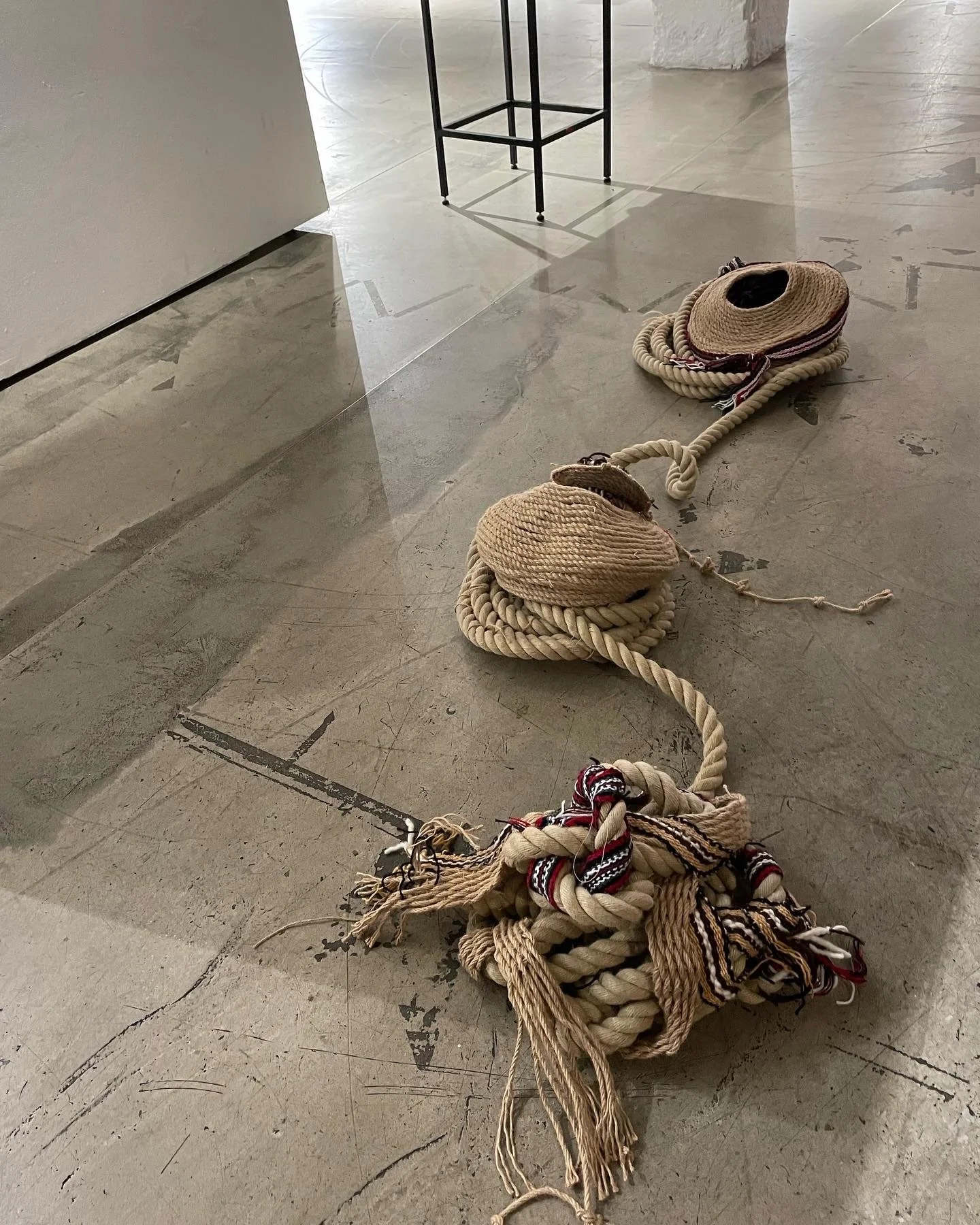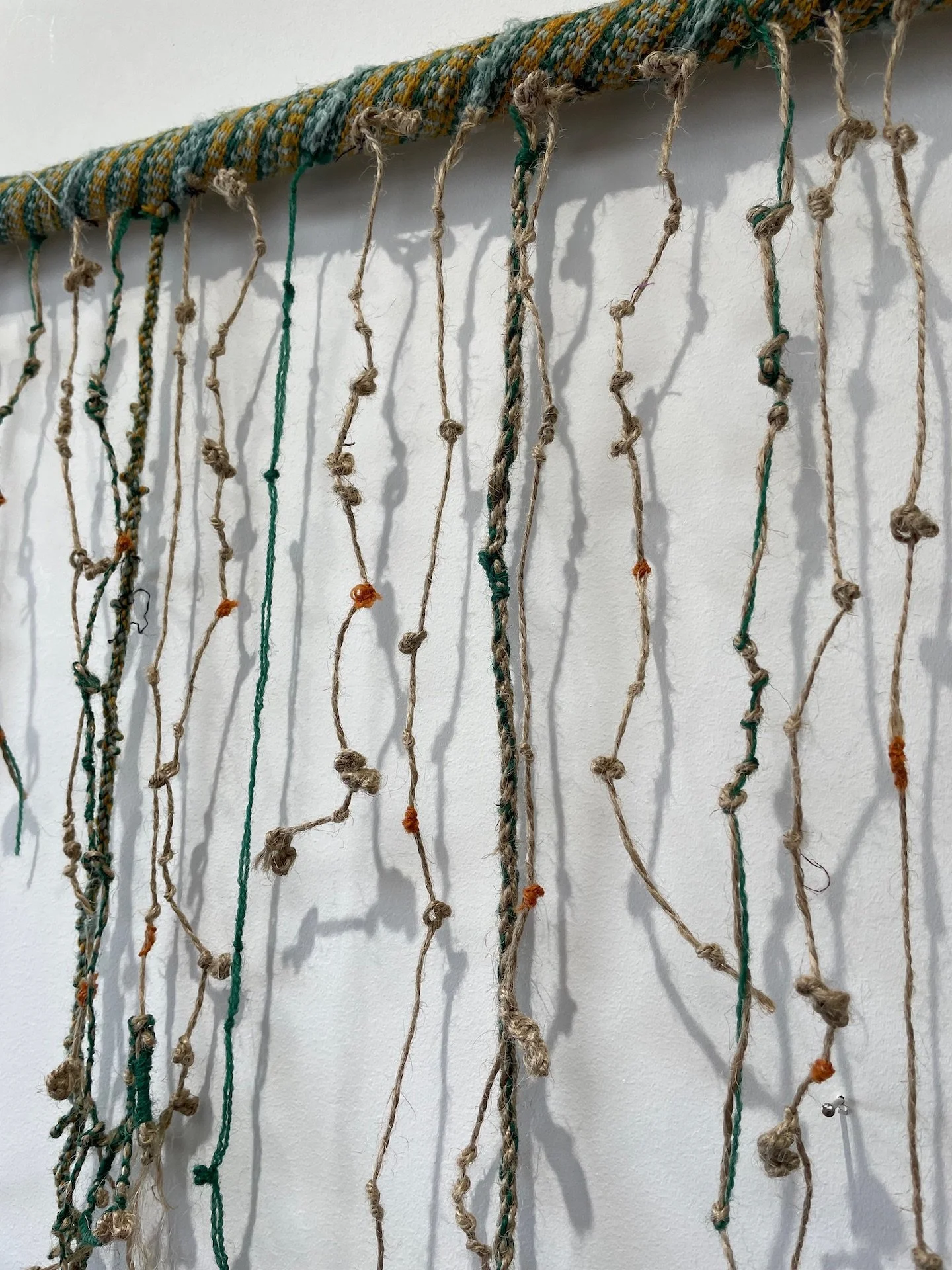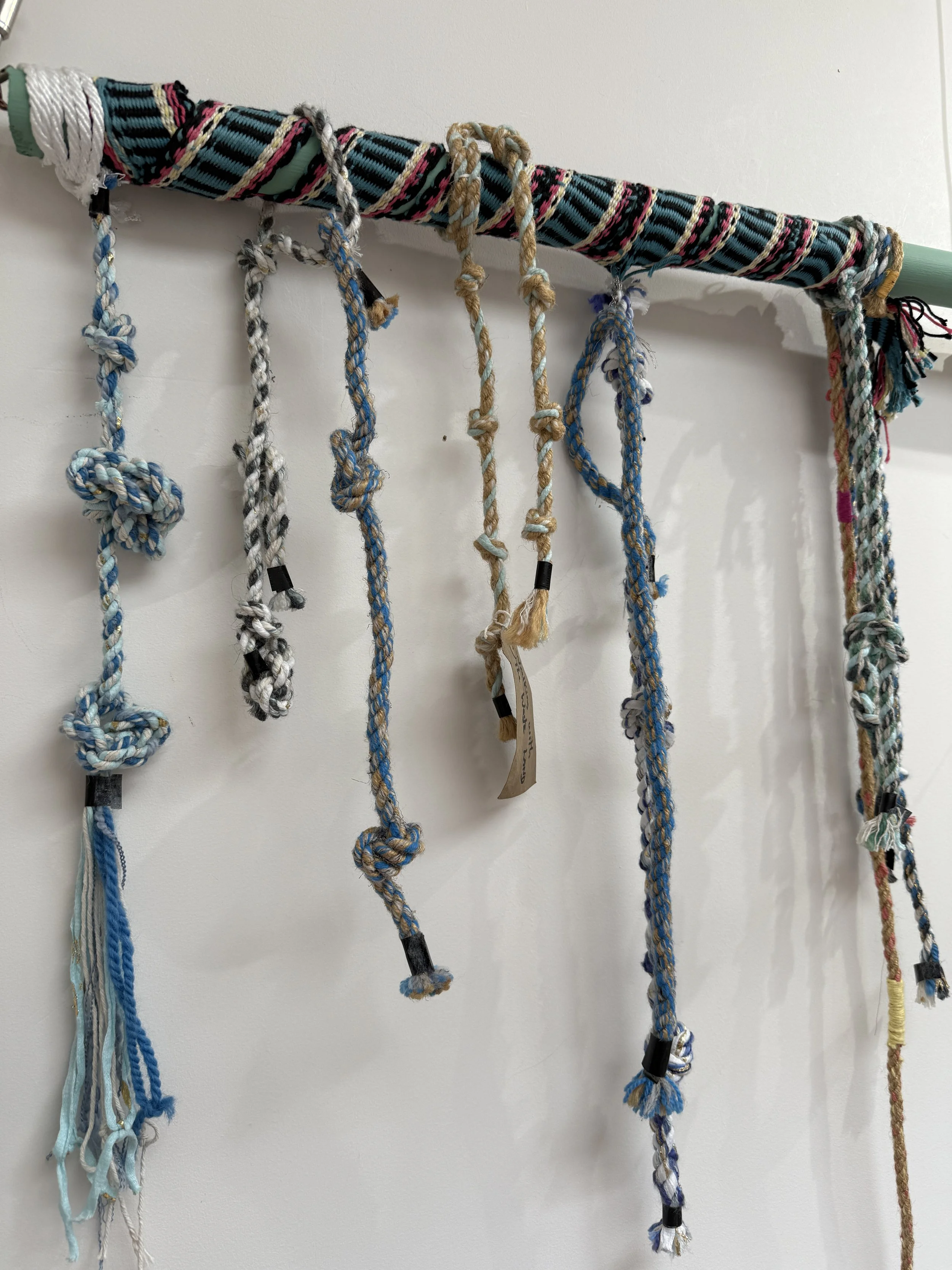 Toll, an assemblage made of ropes, iron, earth and oyster shells Quipu poems Emotional Cartography: Bandera Beauty in Unravelling It's Complicated Hubs Pachamama, threads and rope weavings contributed by 5 artists through PORT Home Walking with The Waste Land