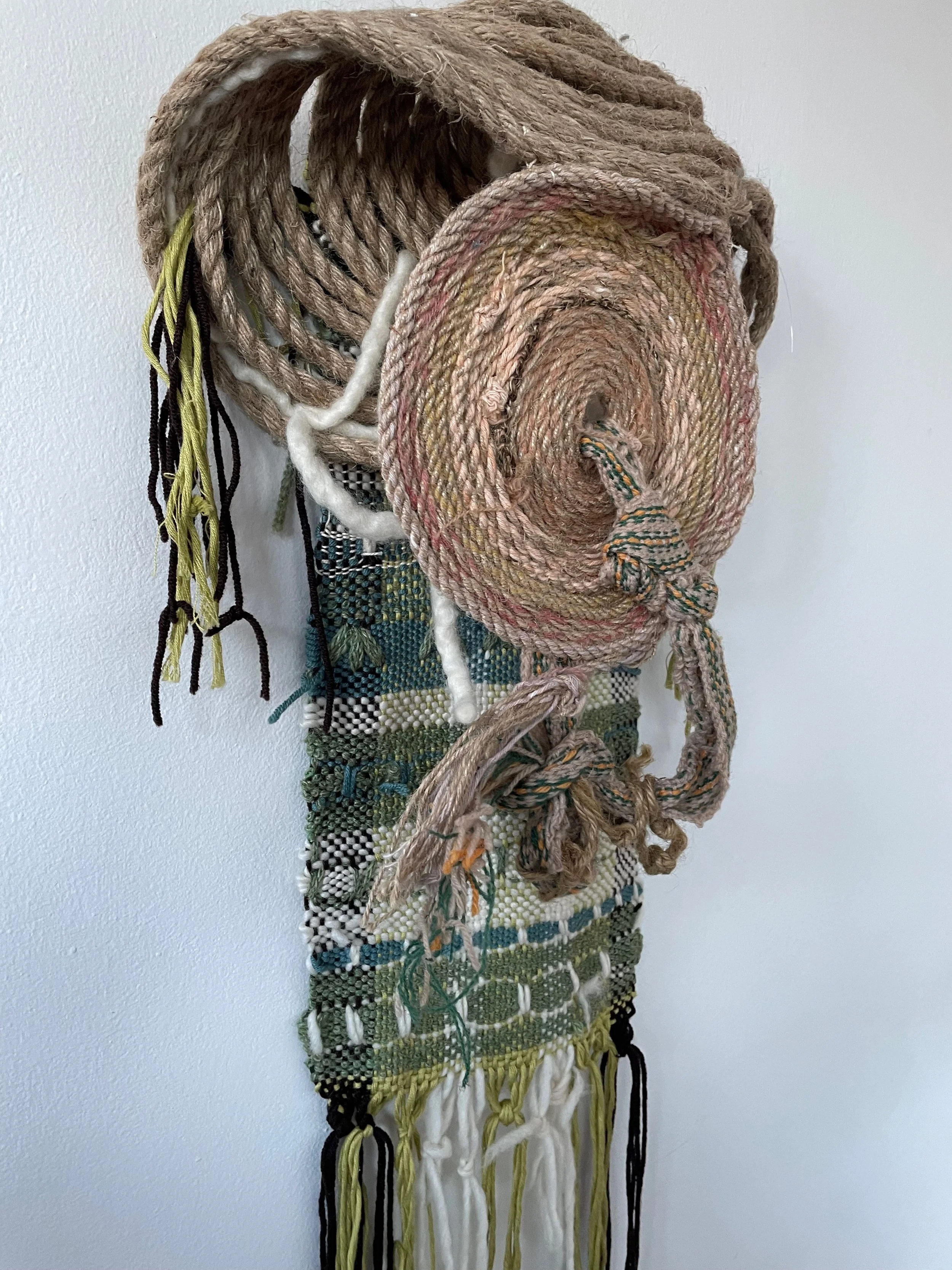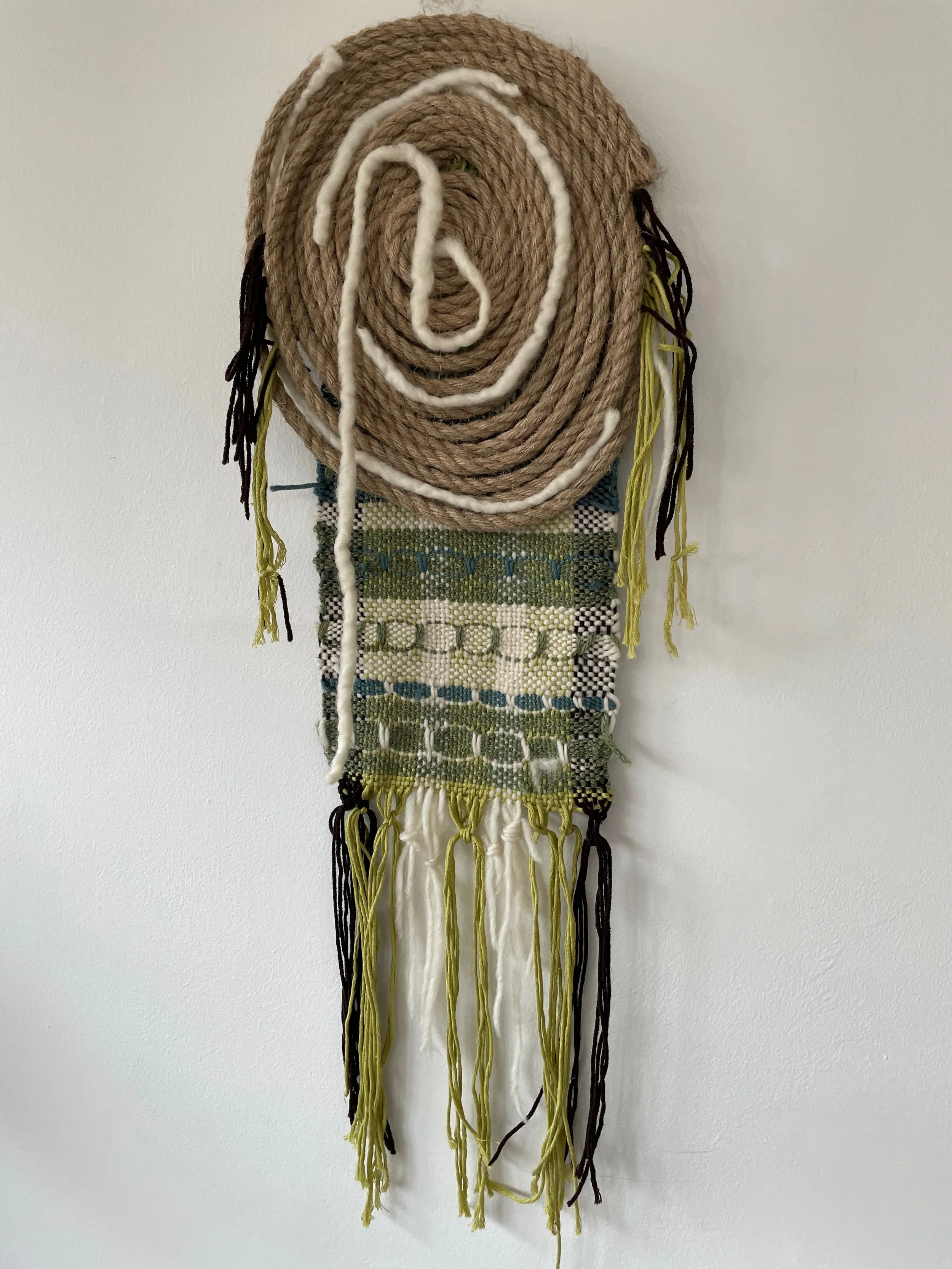 Pachamama, is a quechua (Andean dialect) word for mother earth. It is a wall sculpture woven from threads sourced from five separate coastal locations in the UK. The threads used in its weaving were contributed by the five artists who worked with me on Port with Art Walks Porty.