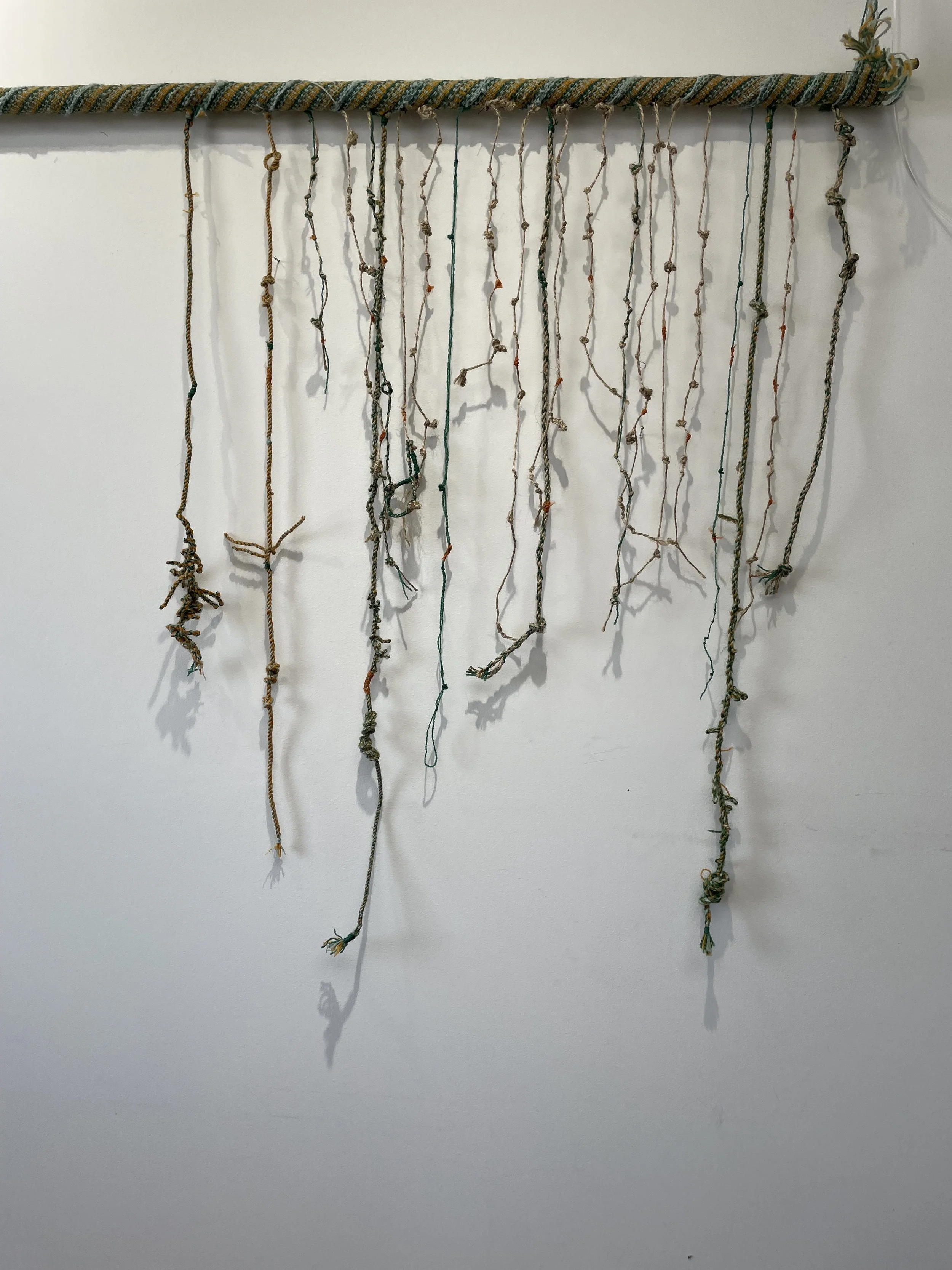 Inspired by my Argentinian and Bolivian heritage, I draw on Quechua, a language of the Andean people. Through the Quechua language we learn that all things exist only in their relationships with something else, including people and nature. As a pre-literate language, the philosophy of Quechua is embodied in the language of weaving. The ‘quipu’ or knot work used in these artworks emulates this ancient and nuanced form of communication.